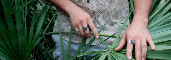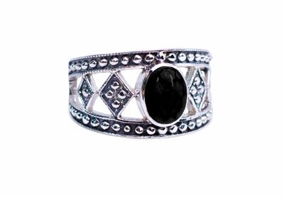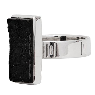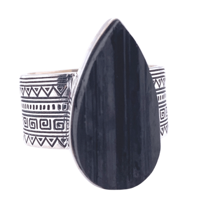 Black Tourmaline Sacred Tribe Unisex Rectangle Ring