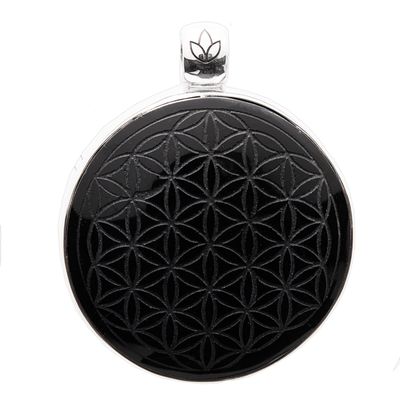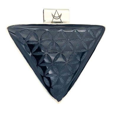 Obsidian Flower Of Life Triangle Unisex Pendant