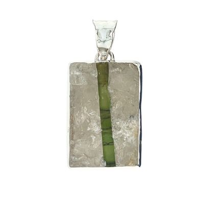 Green Tourmaline Crystal in Quartz Unisex Pendant