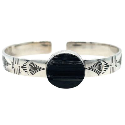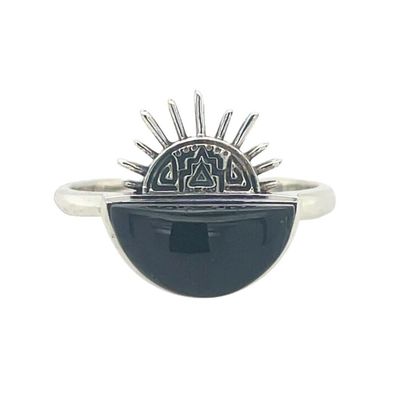 Black Tourmaline Sacred Tribe Unisex Rectangle Ring