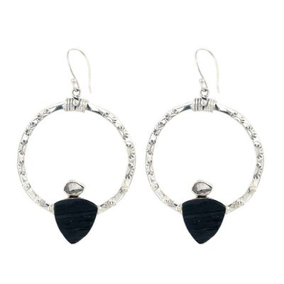 Black Tourmaline Herkimer Diamond Super Power Tribe Earrings